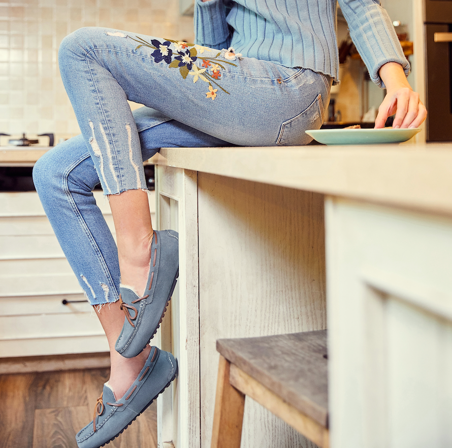 它的样子看起来就像是经典款的豆豆鞋,本身就很百搭,不挑衣服,省心得不得了!冬天上下班开车、在公司办公、回家遛狗,蹬上就能走,实用、省心又好看!