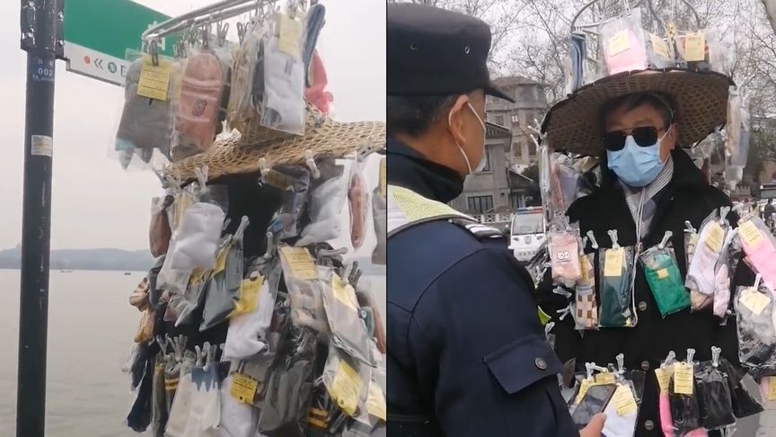 2月21日,浙江杭州。一男子全身挂满袜子,毫不避讳的走进景区,随后景区保安上前进行阻拦,表示男子穿成这样不能进,男子辩称:我不是来摆摊卖的,这是我的衣服。对此男子还表示:这是一个艺术,而保安直呼:艺术你回家里去。有网友表示:保安也管的太多了,不让进没道理。也有网友认为:保安做的对,他这是变相营销