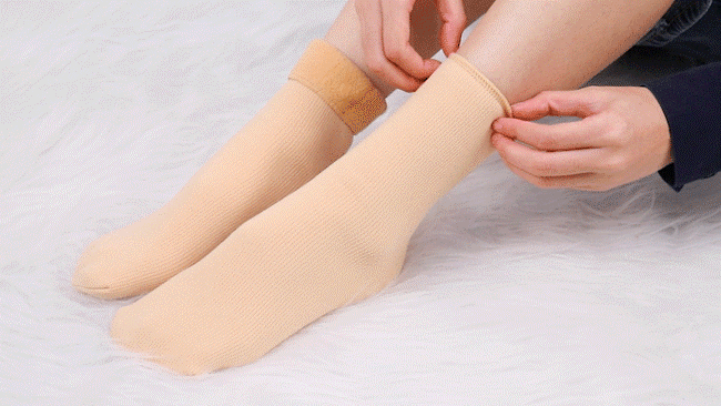 外部螺纹面料不仅抗寒,还给袜子提供了很强的弹力。