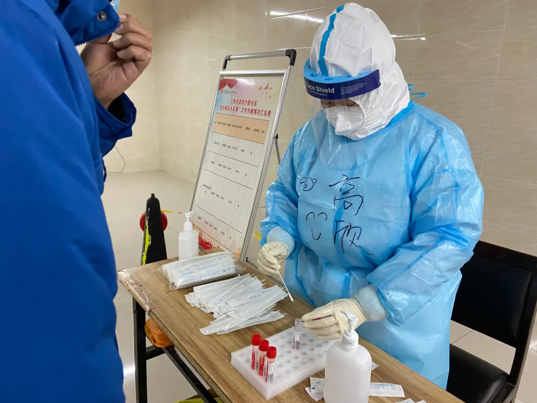 2022年1月11日早上7点,根据上级通知,我们准时抵达西安市未央区沣景国际售楼部集合点,前来迎接的是一位身穿蓝色制服大衣、胸前佩戴党徽的大哥,忙前忙后替大家张罗着。因为接到任务突然,早上出发得又早,我没来得及换上自己的鞋,踩了一双护士单鞋就赶来集合了,这会才觉得脚指头冻得发麻。队里几个女孩都是差不多的情况,正当我们一起商量,去哪儿能买双棉袜时,蓝色制服大哥主动上前询问:“姑娘,你们是有什么困难吗?跟我说!”我不好意思地说:“如果您能联系到便利店老板,帮我们买到棉袜就好了,如果还能买到秋衣就更好了,钱我们可以给他转账。”听完我们的需求,大哥留了我的电话,甩下一句:“等着!”便转身走了。