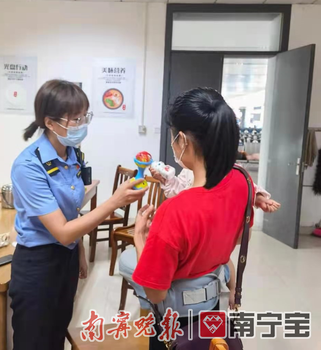 与袁女士一同出行的3个孩子中,最小的只有9个月大。在贵港站停留期间,婴儿啼哭不止,高云欢立即让同事到车站超市买来了蛋糕和牛奶,又找来各种玩具,不停安抚宝宝情绪。
