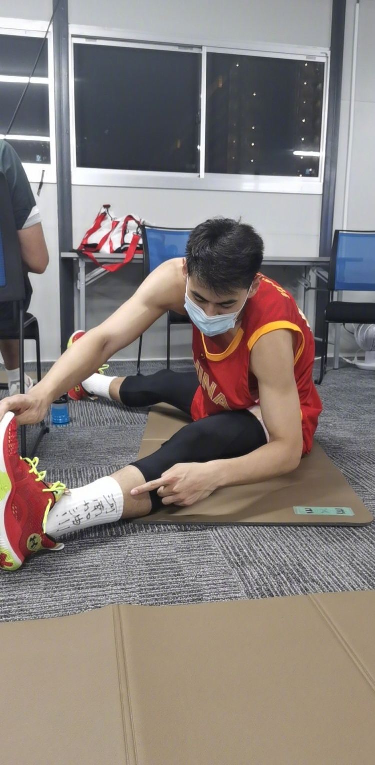 据篮球评论员苏群晒出的照片,颜鹏在自己的袜子上写着“河南加油!!!”。