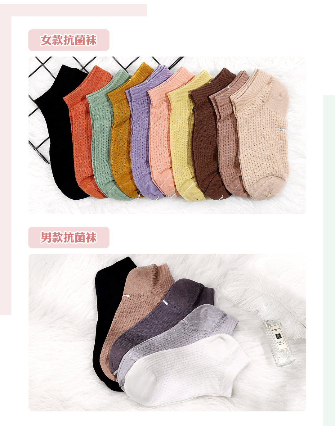 咱们这款抗菌袜,女款10个色,男款5个色。
