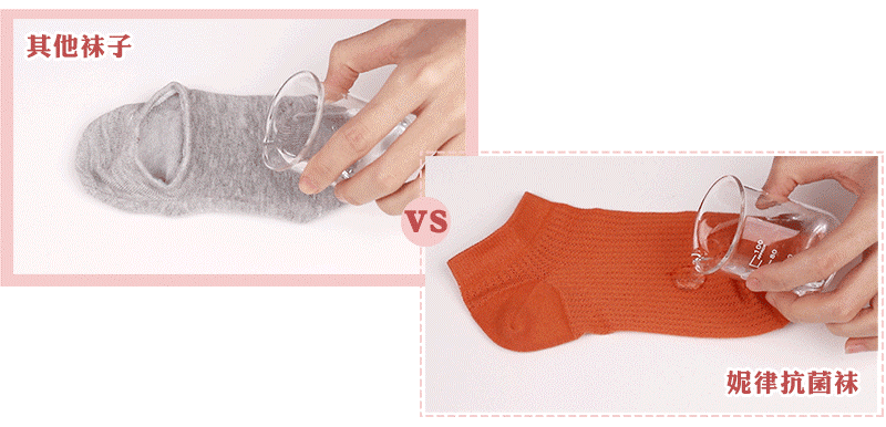 我们直接拿个普通袜子来试验一下,康康妮律抗菌袜和普通袜子的吸湿力度,对比起来有多直观。