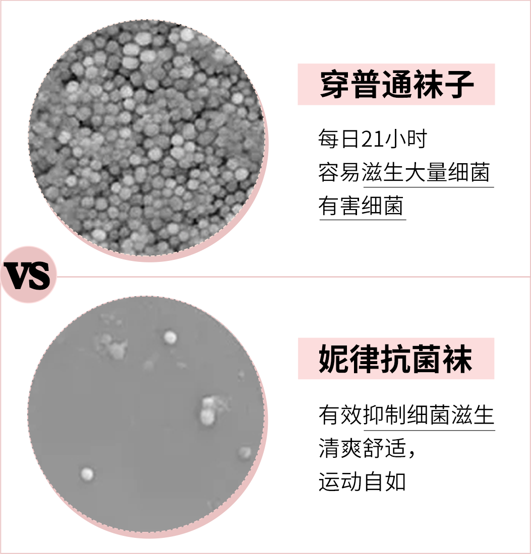 就像我现在穿的这款妮律抗菌袜,还有3A级的抗菌效果呢!